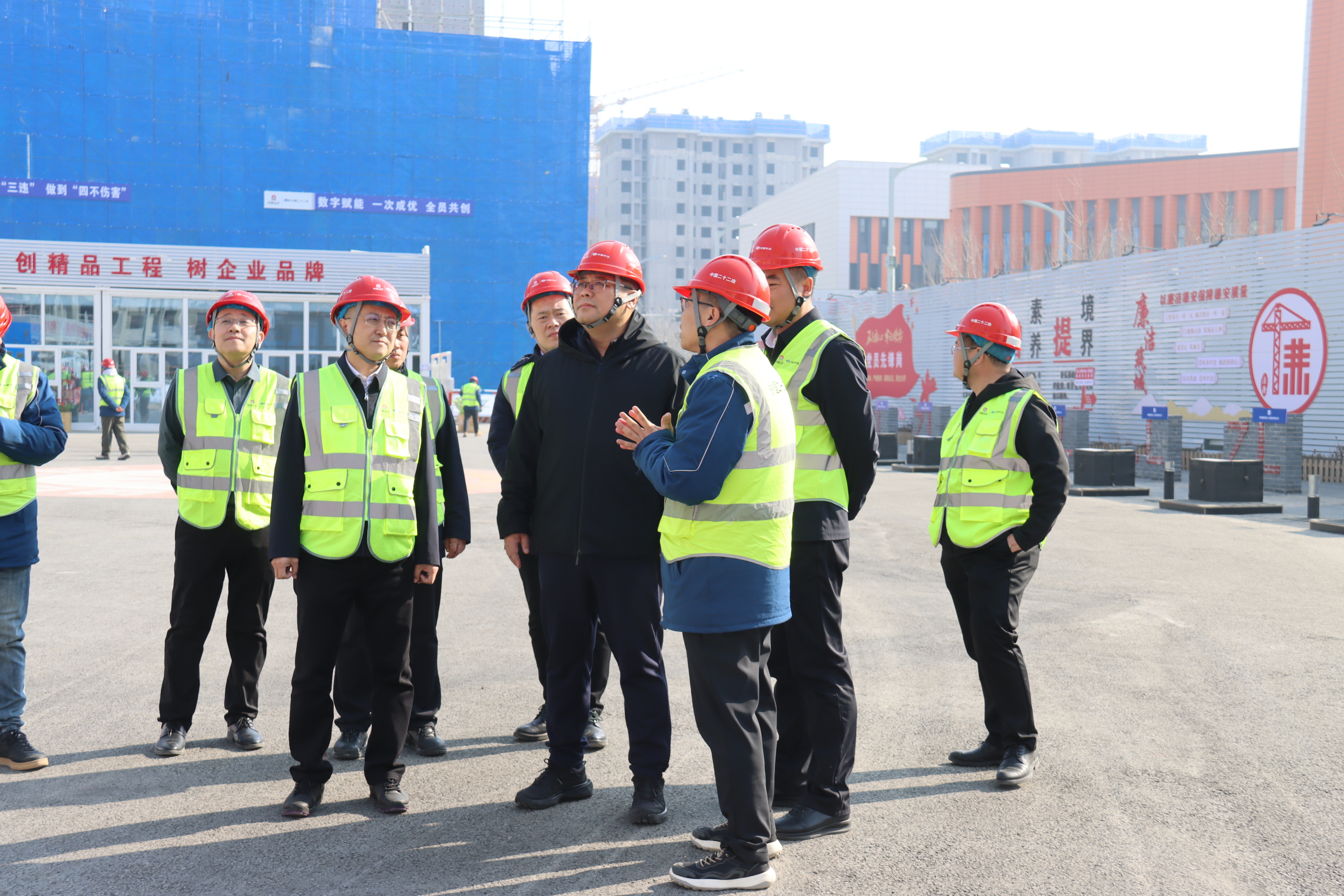 2月13日,中國二十二冶黨委副書記、總經(jīng)理慈國強先后到雄安創(chuàng)新坊住宅項目、公建項目、青藤小鎮(zhèn)項目、綜保物流項目走訪慰問,帶班檢查春節(jié)期間施工情況,向春節(jié)期間堅守一線的建設(shè)者致以新春祝福。
